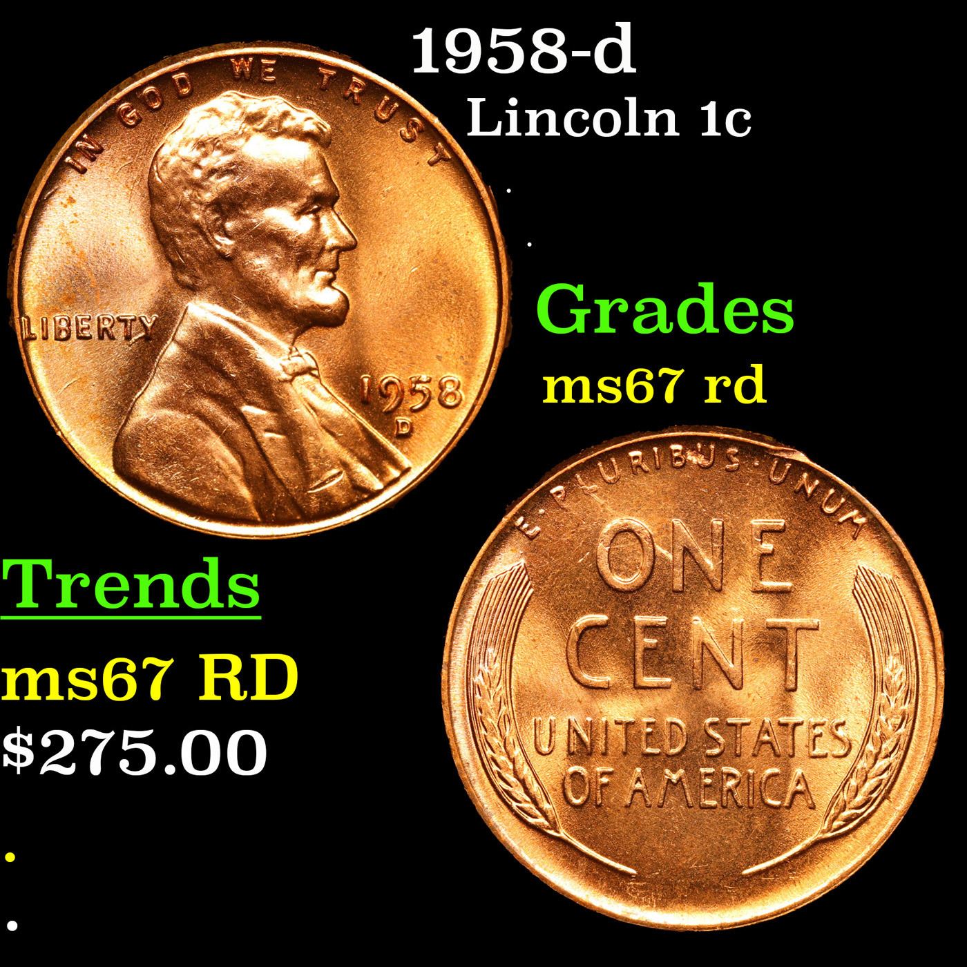 1958-d Lincoln Cent 1c Grades GEM++ Unc RD.