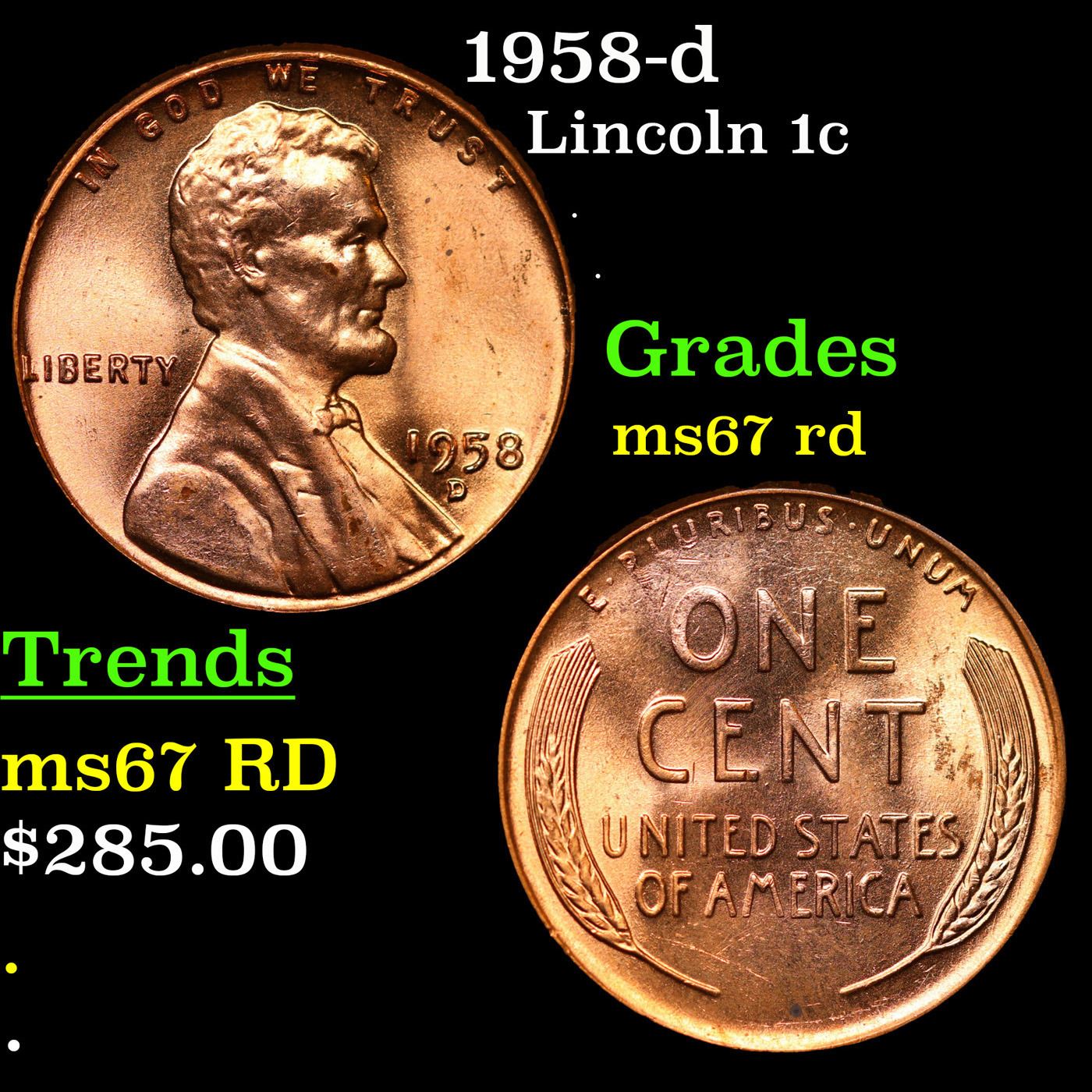 1958-d Lincoln Cent 1c Grades GEM++ Unc RD.