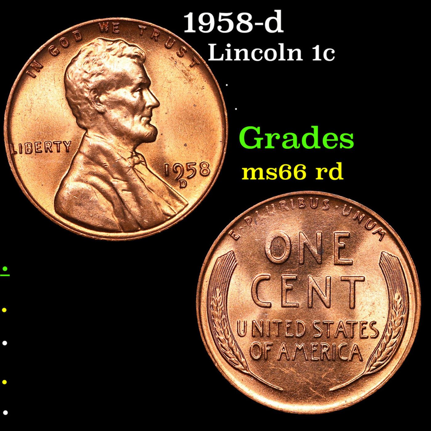 1958-d Lincoln Cent 1c Grades GEM+ Unc RD.