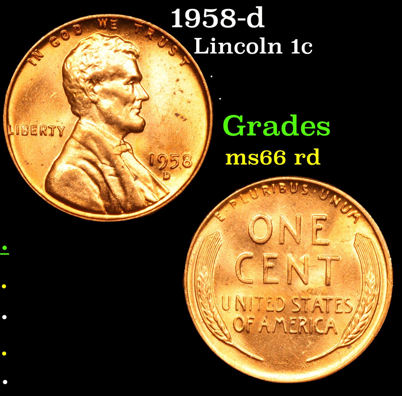 1958-d Lincoln Cent 1c Grades GEM+ Unc RD.