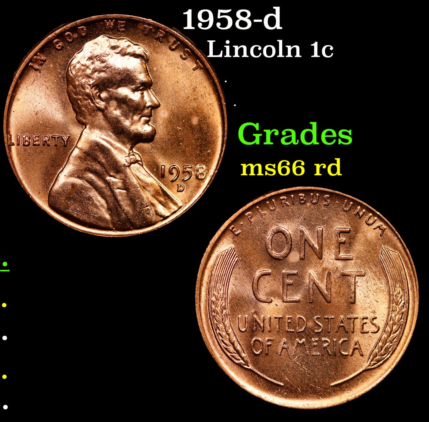 1958-d Lincoln Cent 1c Grades GEM+ Unc RD.