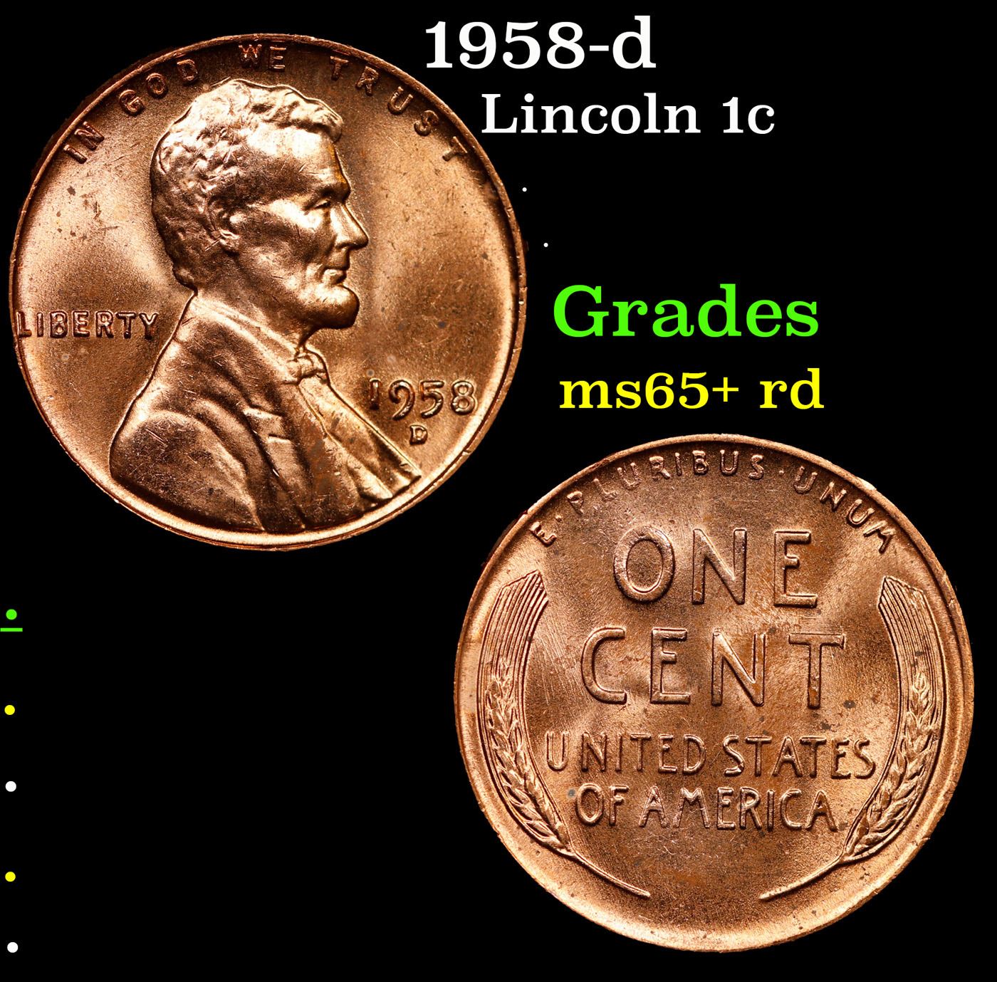 1958-d Lincoln Cent 1c Grades Gem+ Unc RD.