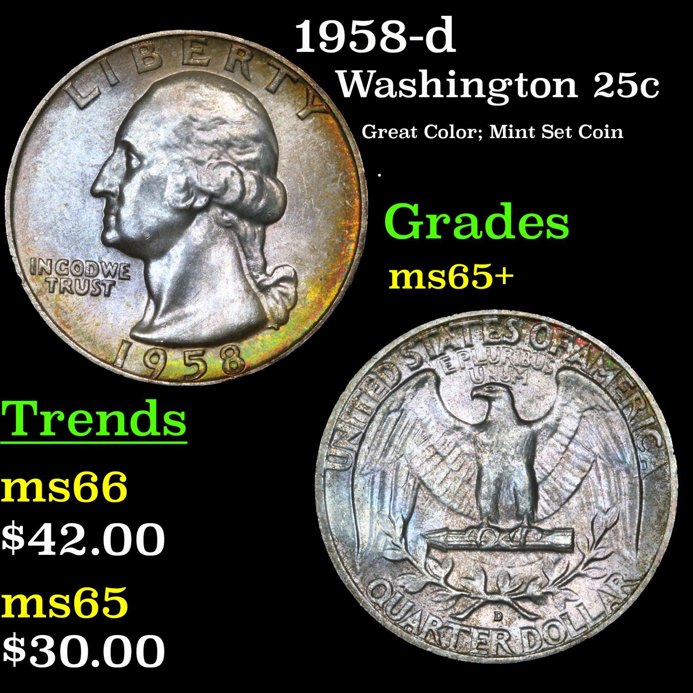 1958-d Washington Quarter 25c Grades GEM+ Unc.
