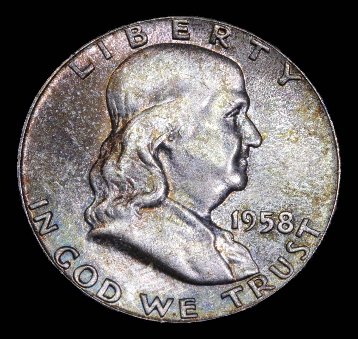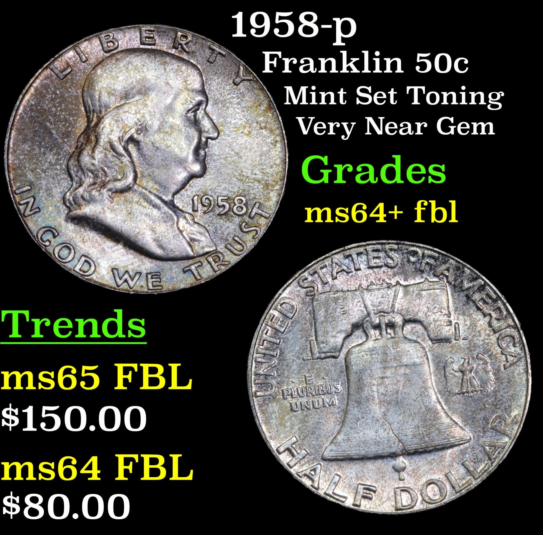 1958-p Mint Set Toning Very Near Gem Franklin Half Dollar 50c Grades Choice Unc+ FBL.