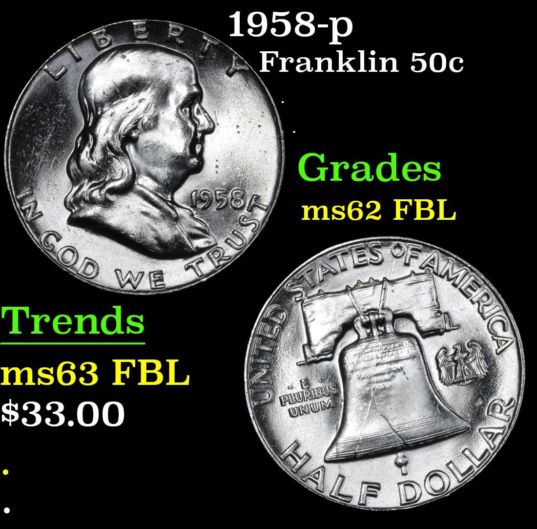 1958-p . . Franklin Half Dollar 50c Grades Select Unc FBL.