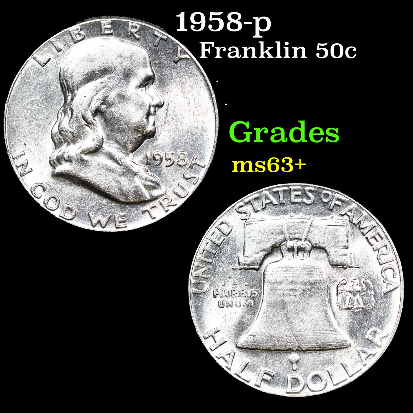 1958-p Franklin Half Dollar 50c Grades Select+ Unc.