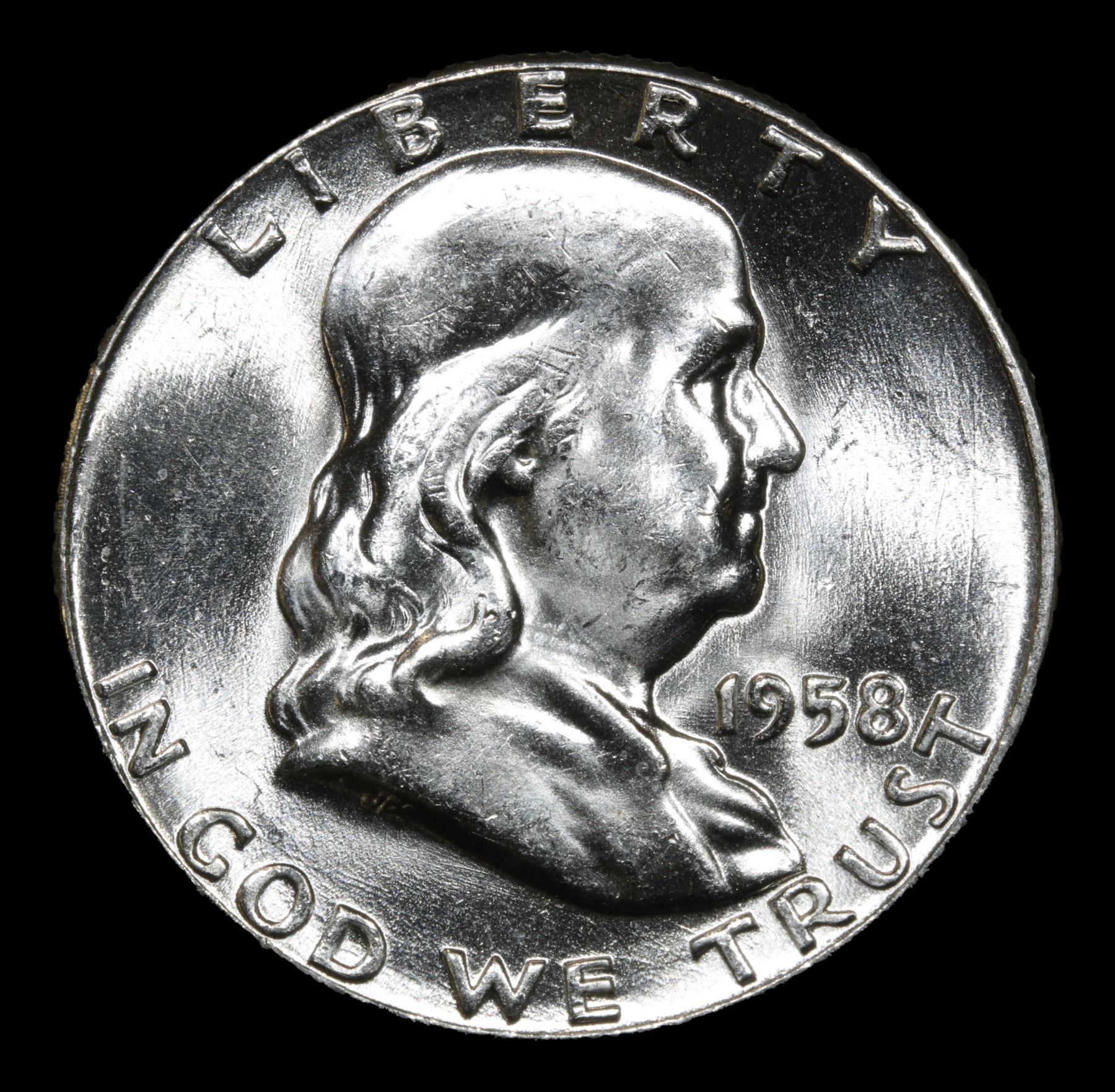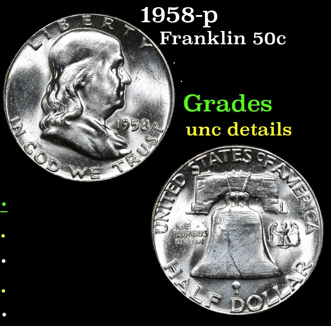 1958-p Franklin Half Dollar 50c Grades Unc Details.