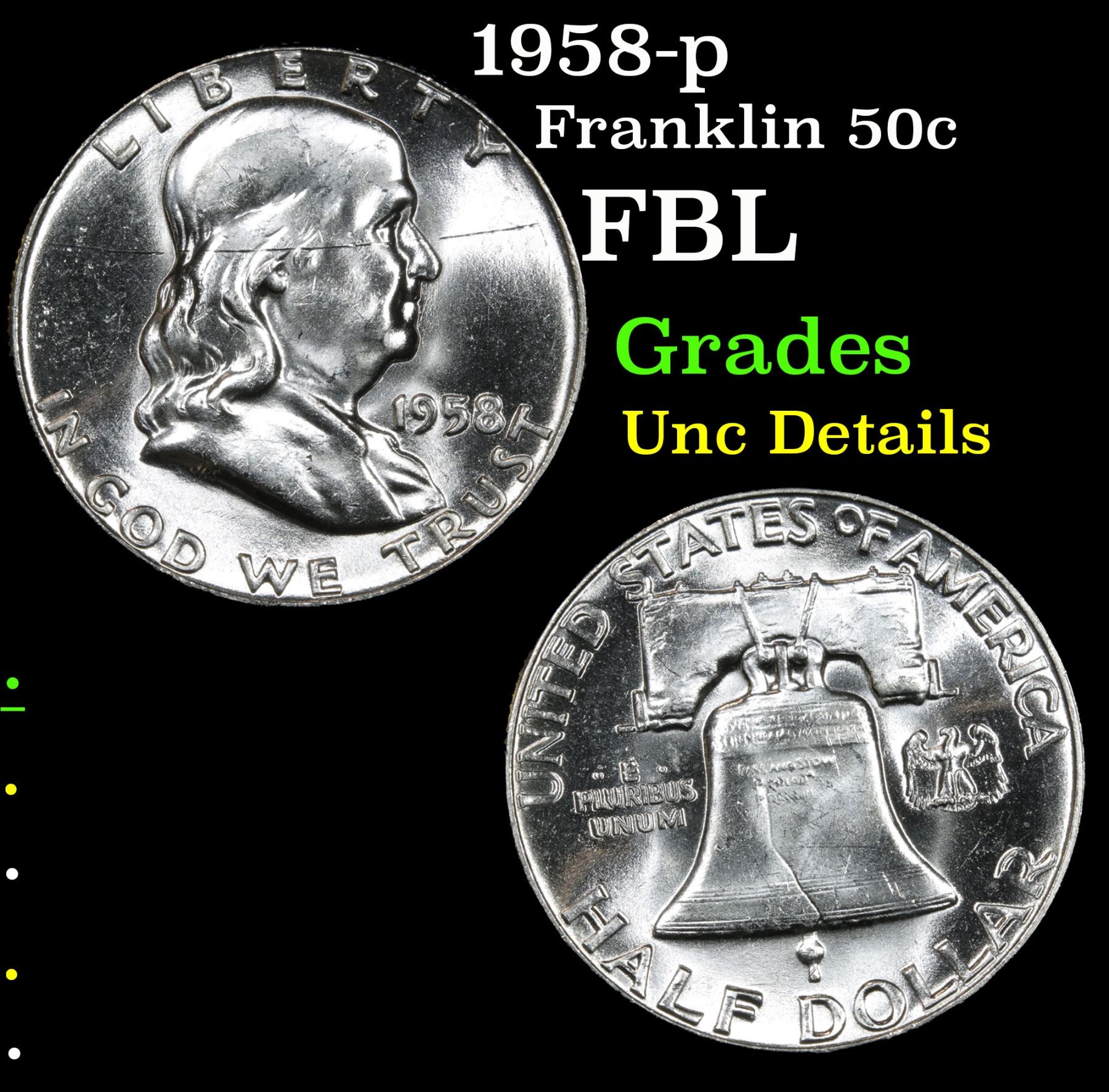 1958-p Franklin Half Dollar 50c Grades Unc Details. FBL