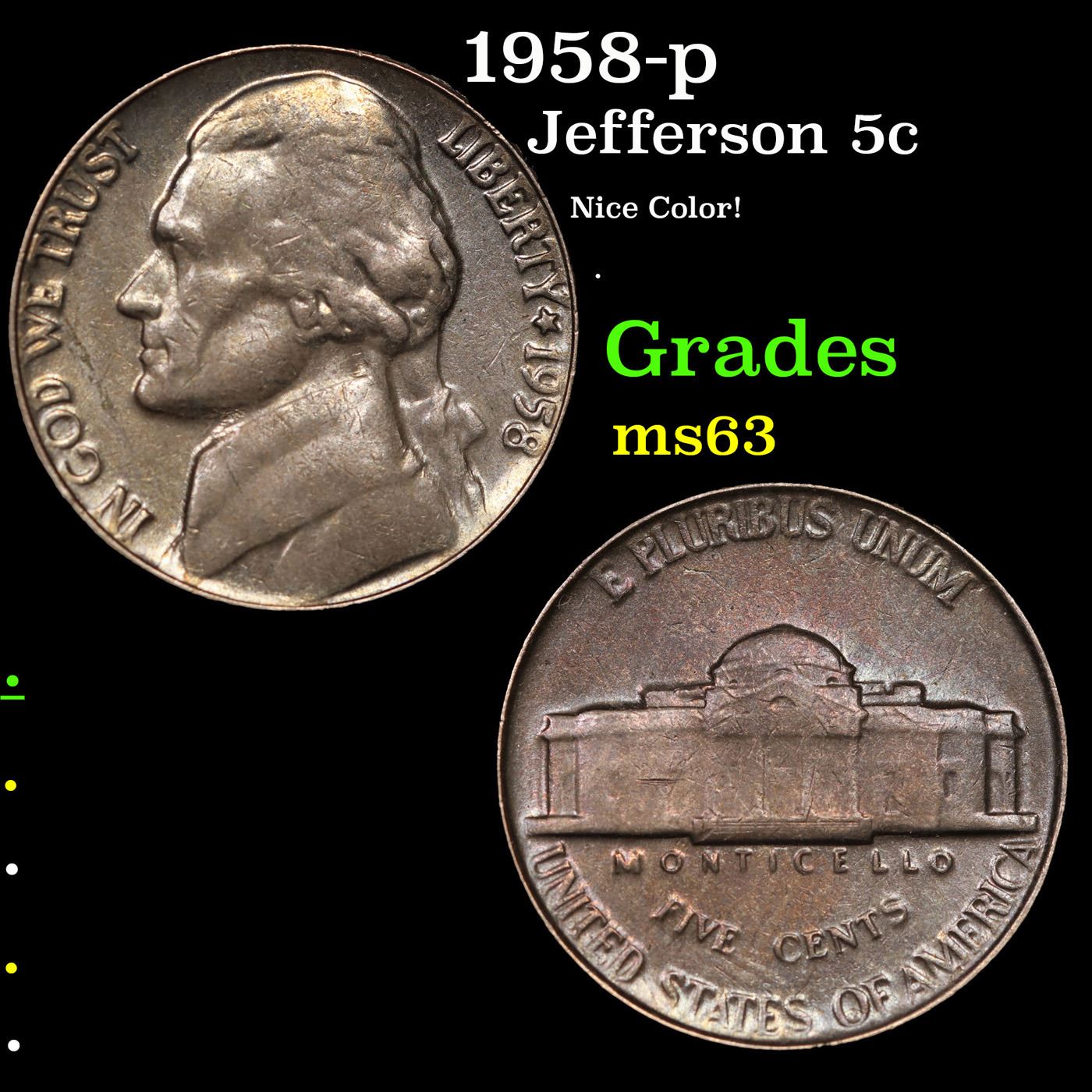 1958-p Jefferson Nickel 5c Grades Select Unc.