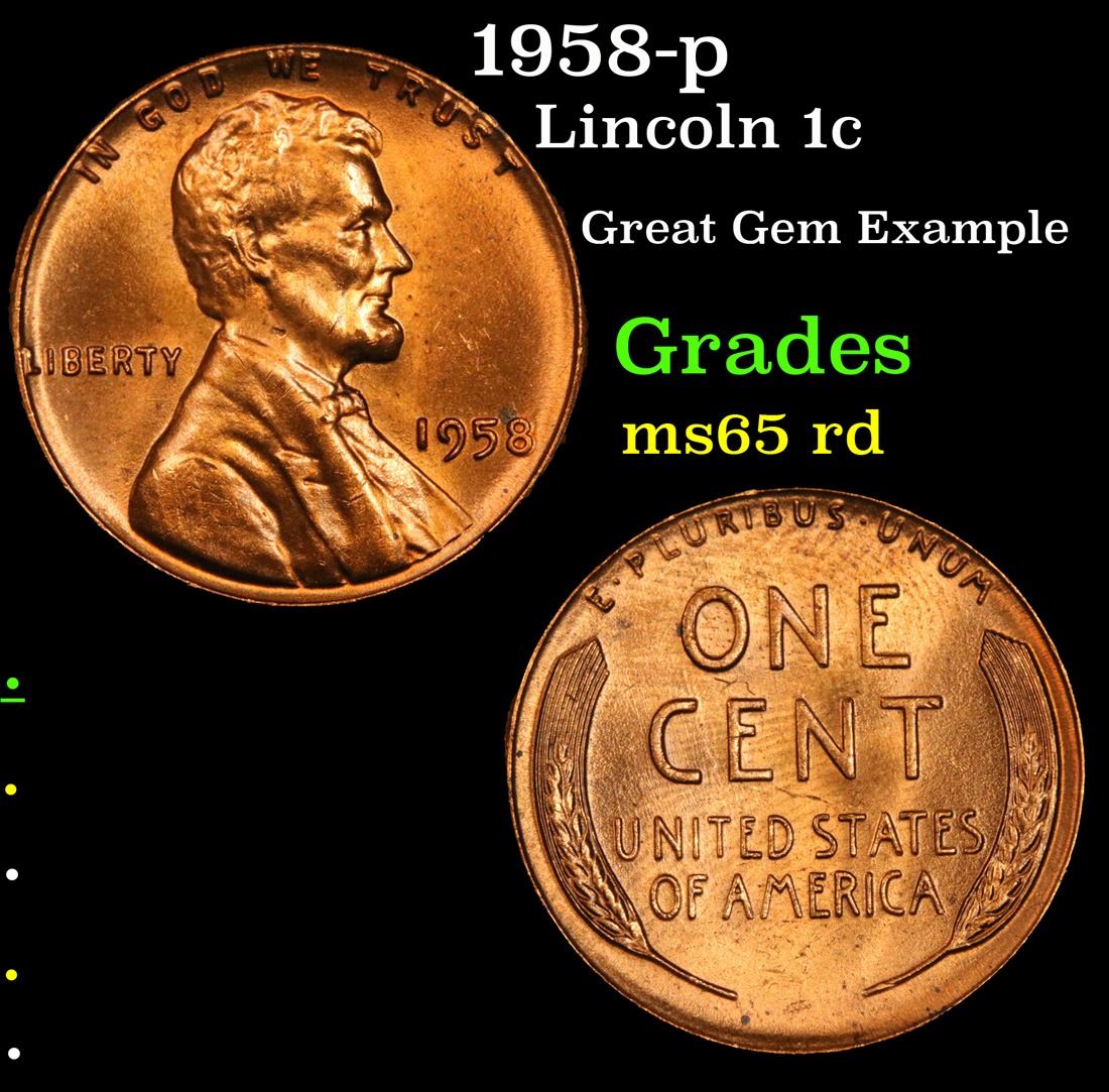 1958-p . Great Gem Example Lincoln Cent 1c Grades GEM Unc RD.