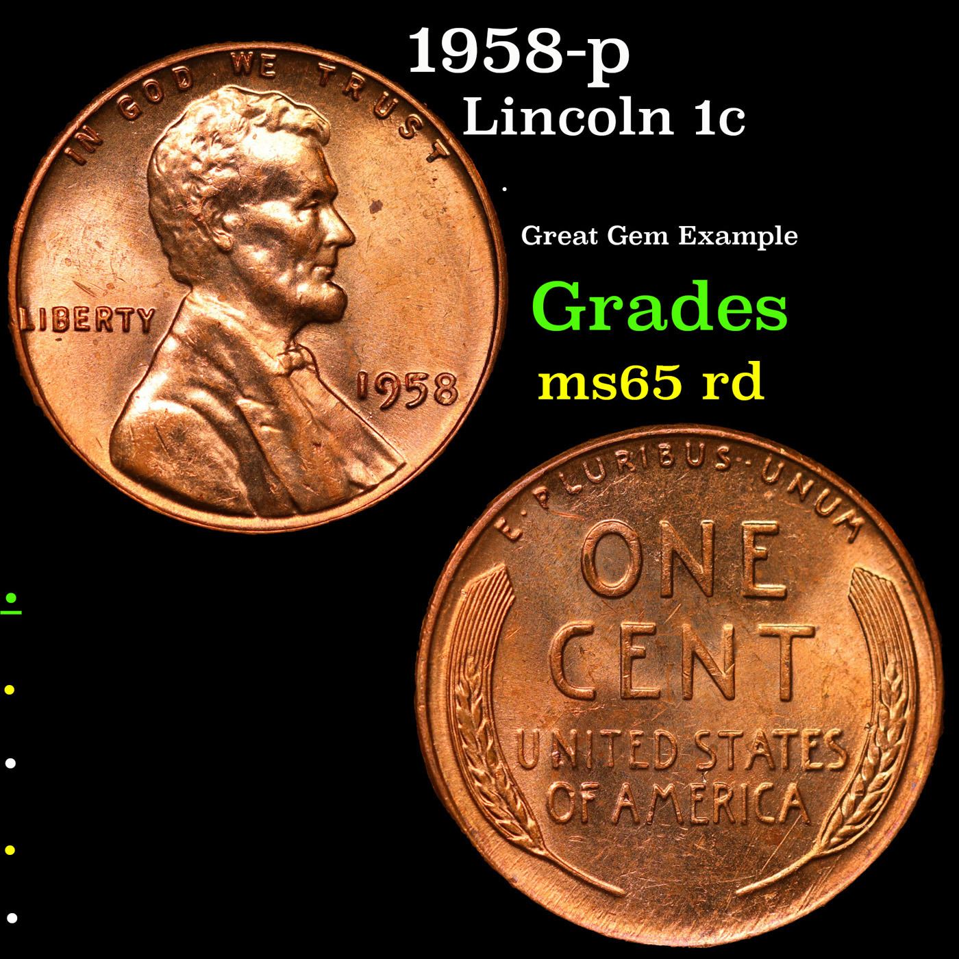 1958-p Lincoln Cent 1c Grades GEM Unc RD.