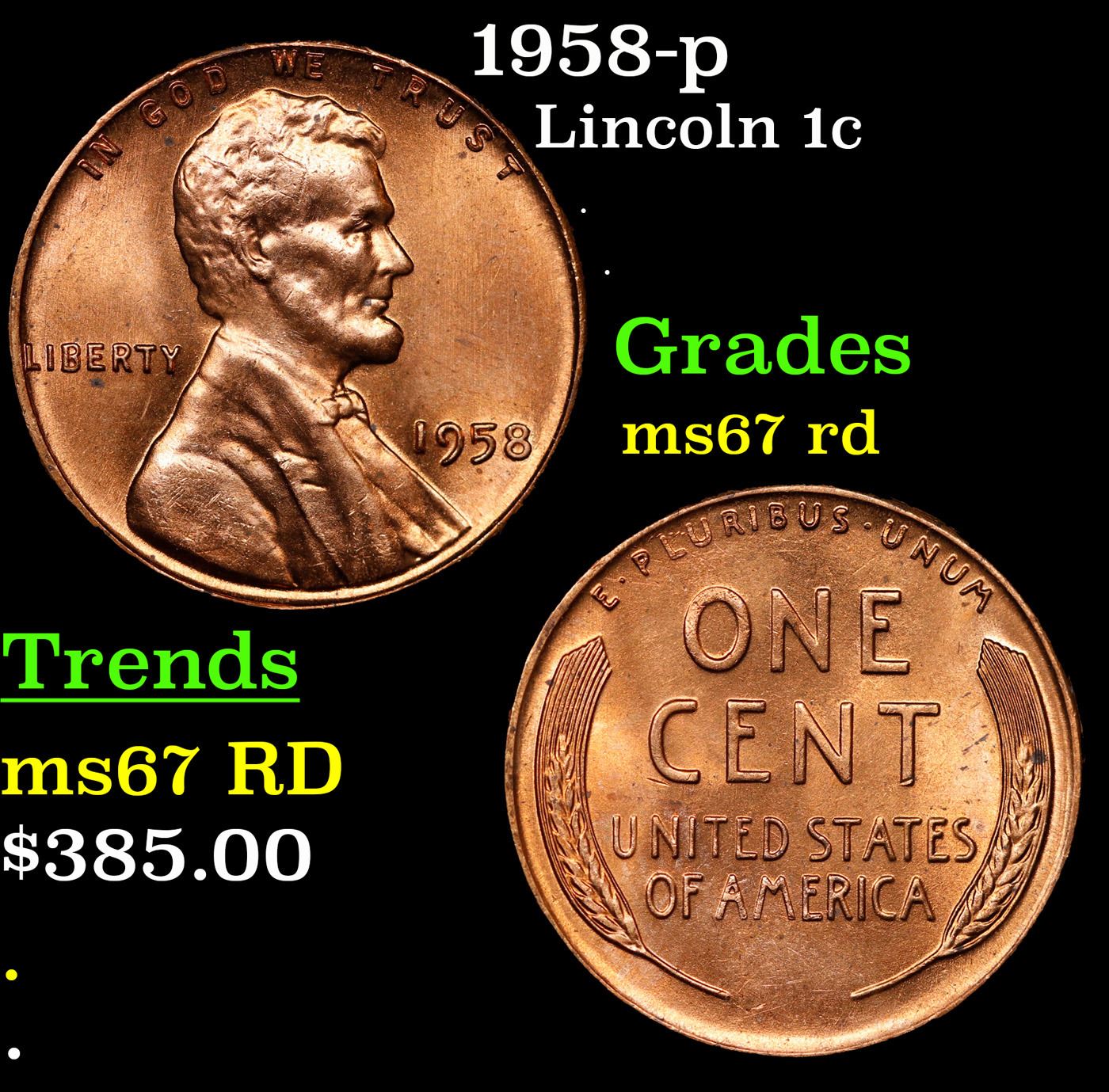 1958-p Lincoln Cent 1c Grades GEM++ Unc RD.