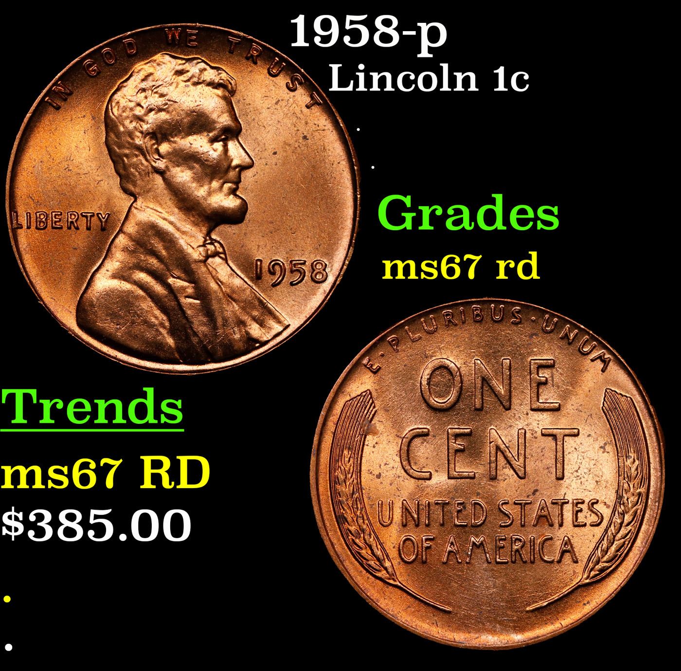 1958-p Lincoln Cent 1c Grades GEM++ Unc RD.
