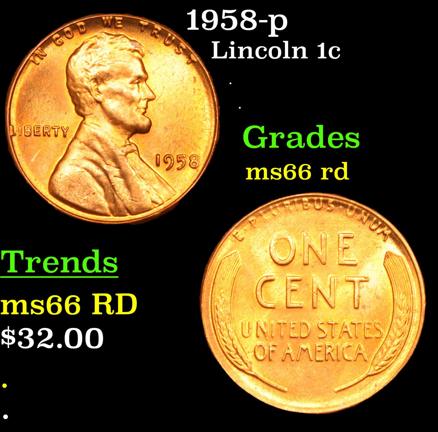 1958-p Lincoln Cent 1c Grades GEM+ Unc RD.