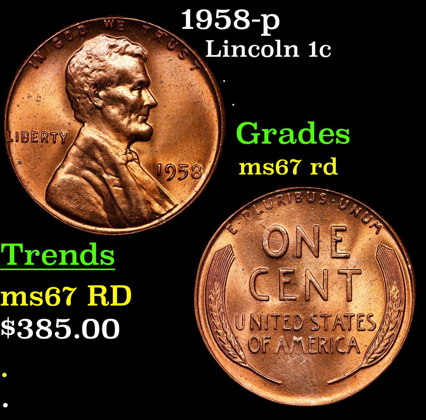1958-p Lincoln Cent 1c Grades GEM++ Unc RD.