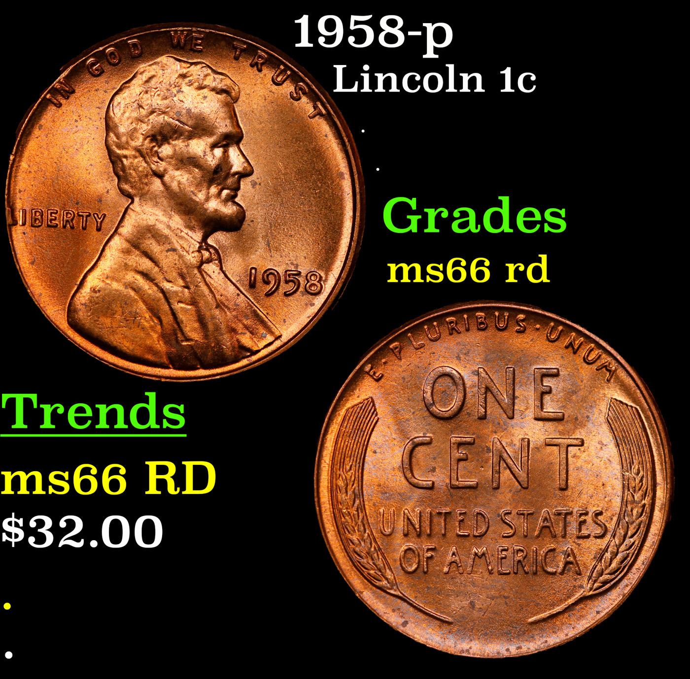 1958-p Lincoln Cent 1c Grades GEM+ Unc RD.