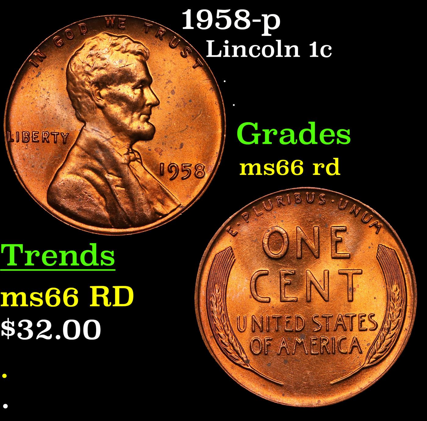 1958-p Lincoln Cent 1c Grades GEM+ Unc RD.