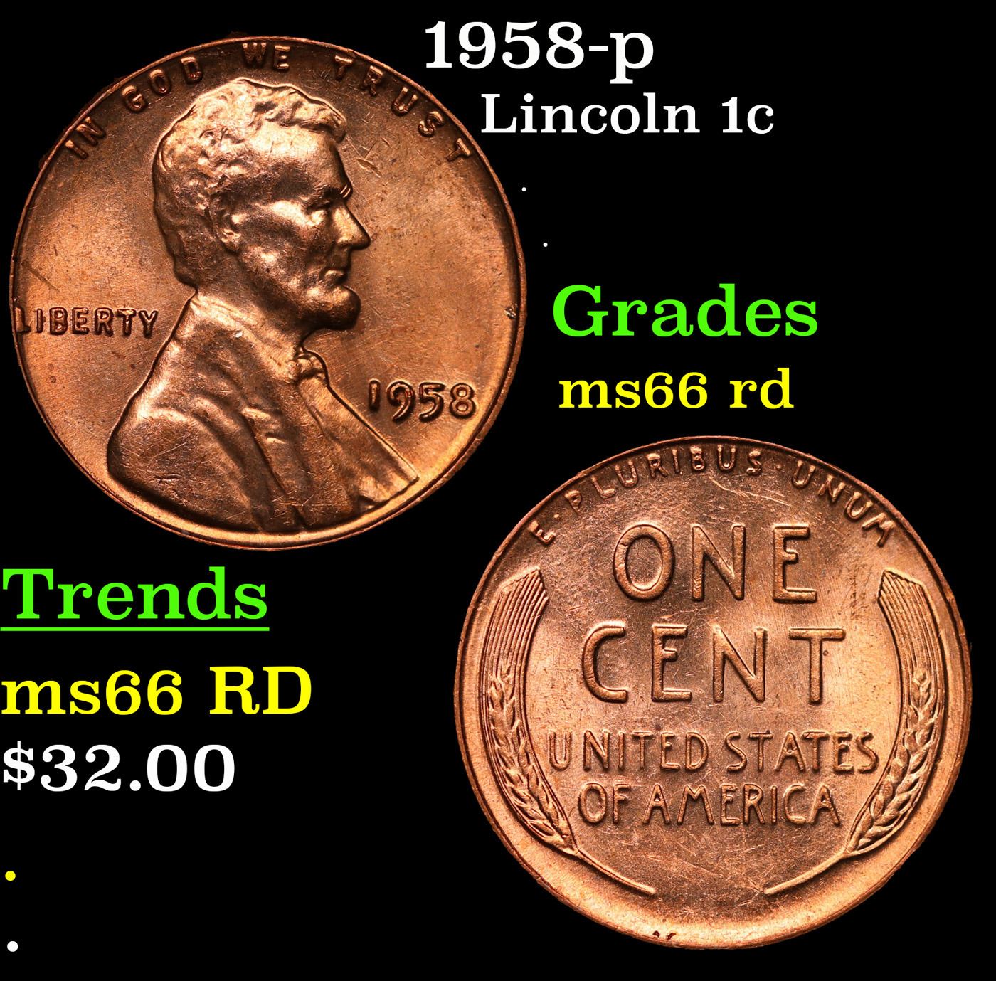 1958-p Lincoln Cent 1c Grades GEM+ Unc RD.