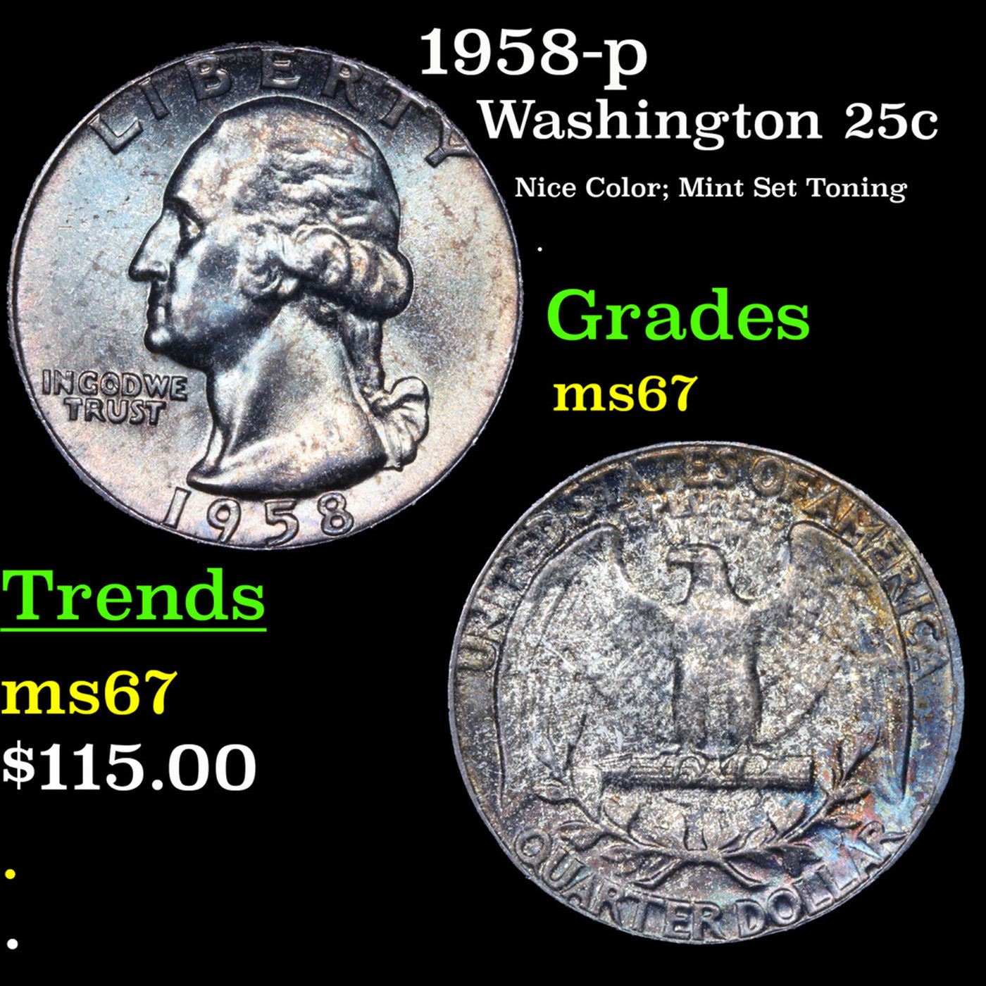1958-p Washington Quarter 25c Grades GEM++ Unc.