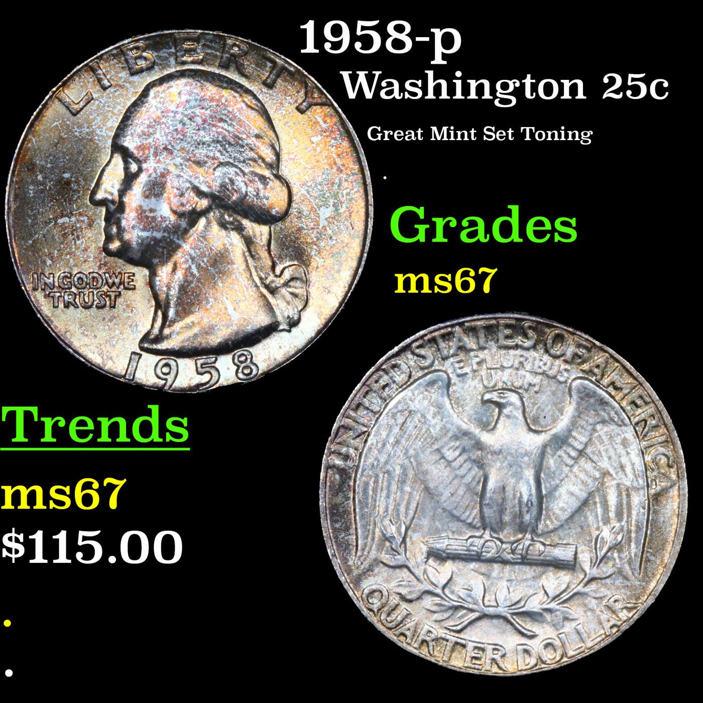 1958-p Washington Quarter 25c Grades GEM++ Unc.