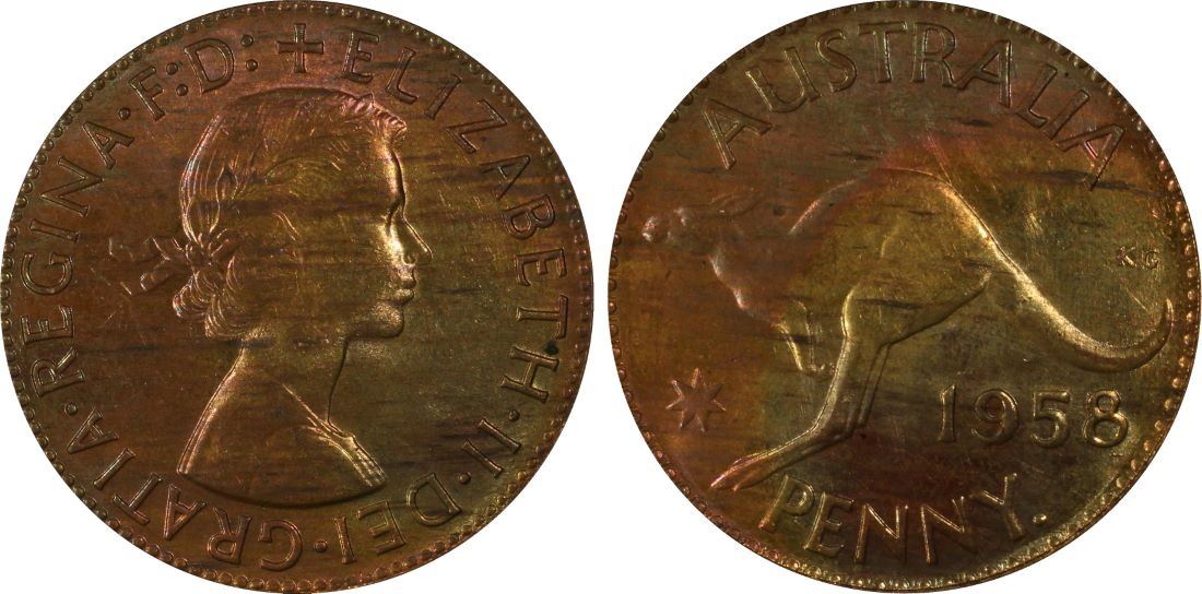 1958Y. Australian QEII Penny - PCGS MS 63RB