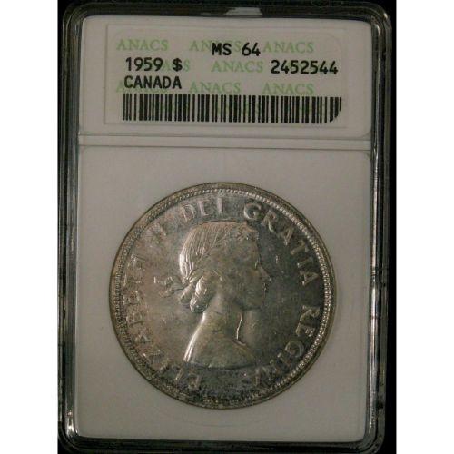 1959 $1 ANACS MS64. Blast white and lustrous.