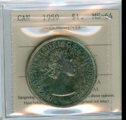 1959 $1 ICCS MS64. Difficult date to find in high mintstate conditions.