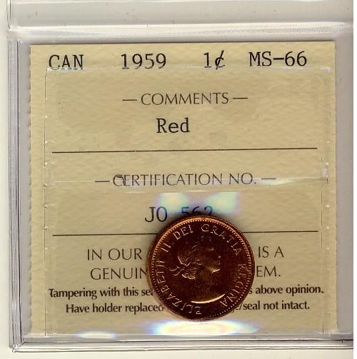 1959 1¢ ICCS MS66 Full Red, A superb GEM example.