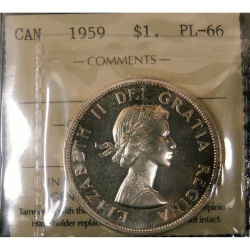 1959 $1 ICCS PL-66 A premium quality example. The coin is fully struck and has full lustre. It has reflective surfaces on both the obverse and reverse and superb eye appeal.
