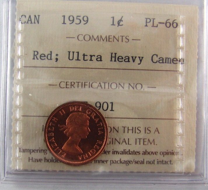 1959 1¢ ICCS PL66 Ultra Heavy Cameo.