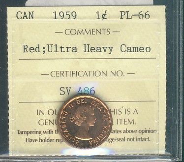 1959 1¢ ICCS PL66 Ultra Heavy Cameo.