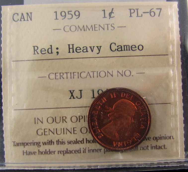 1959 1¢ ICCS PL67 Heavy Cameo.