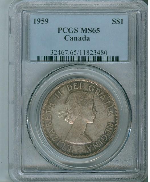 1959 $1 PCGS MS65. A gem example with attractive tone.