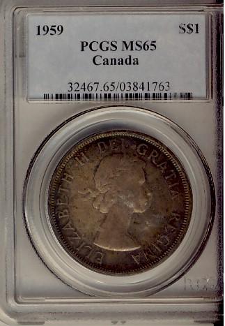 1959 $1 PCGS MS65. Tough issue for grade. Gem tones.