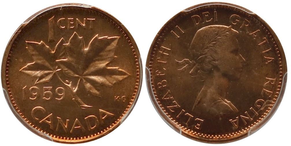 1959 1¢ PCGS Superb Gem Mint State-66RD.