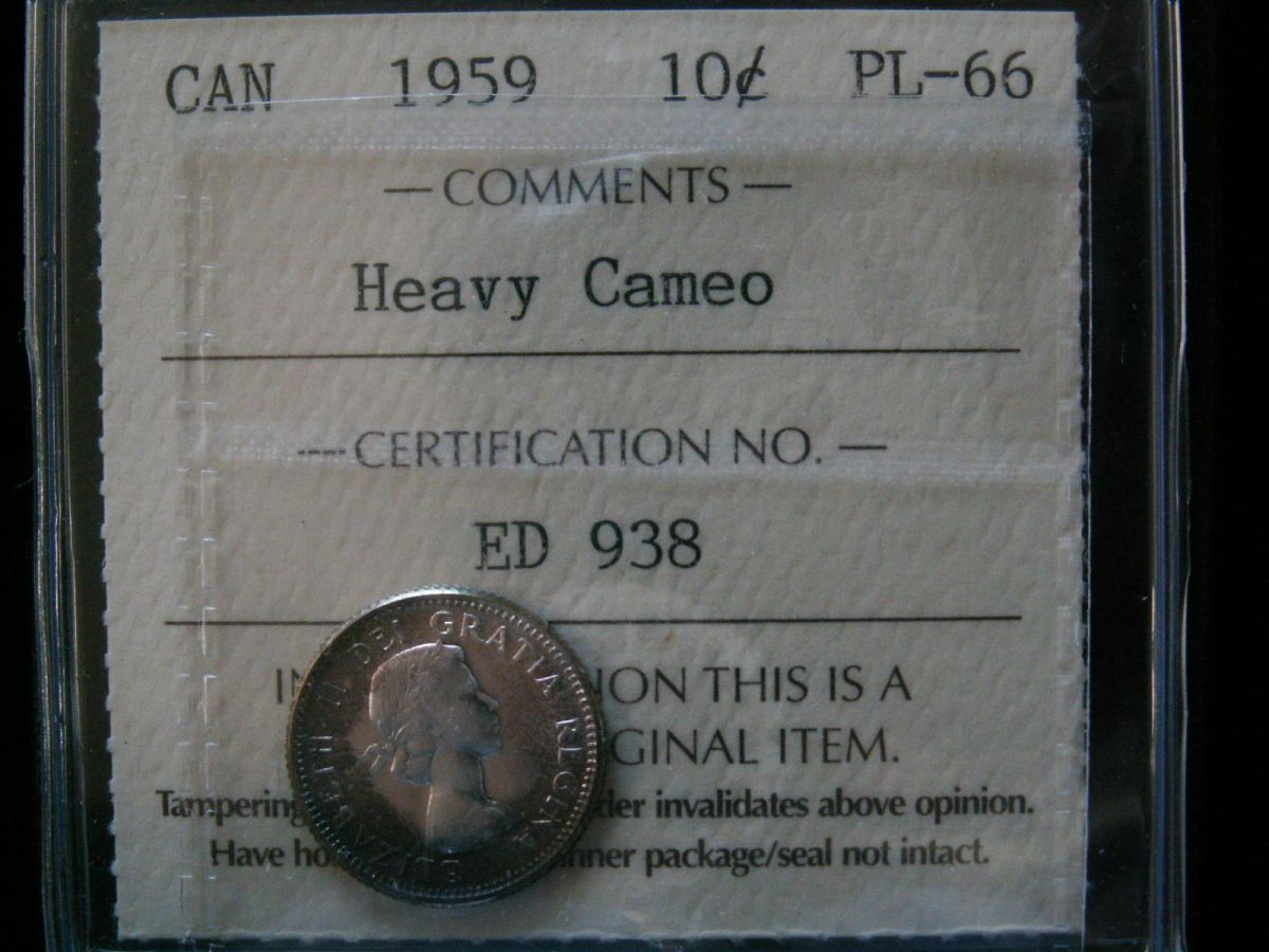 1959 10¢ ICCS PL66 Heavy Cameo. Tied for finest graded