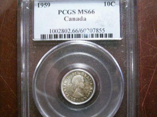 1959 10¢ PCGS MS66. A superbly toned coin withlots of lustre and eye appeal.