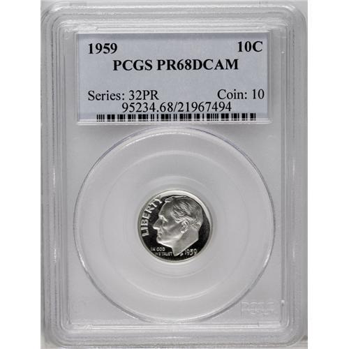 1959 10C PR68 Deep Cameo PCGS. Exquisitely struck with 1959[10C] PR68 Deep Cameo PCGS.