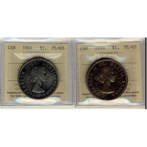 1959 & 1961 $1 ICCS PL65. Lot of three coins, all both with great eye appeal. Includes a 1960 25¢ PCGS PL65.