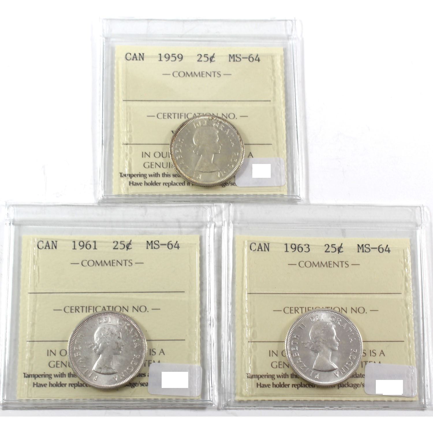 1959, 1961 & 1963 ICCS Certified MS-64. 3pcs