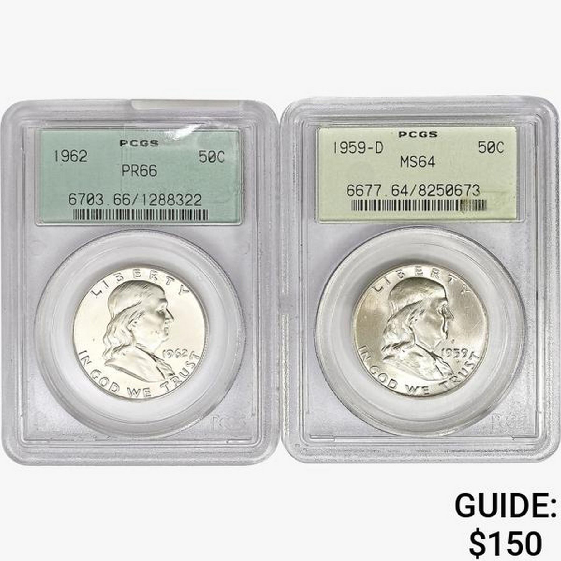 1959&1962 [2] Franklin Half Dollar PCGS MS/PR64/66