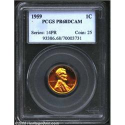1959 1C PR68 Deep Cameo PCGS. Shimmering orange colored features are both fully lustrous and boldly.