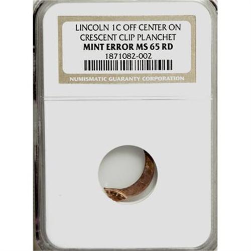<B>Undated Lincoln Memorial Cent--Off Center on a Crescent Clipped Planchet--MS65 Red NGC.</B></I><BR><BR><B>Coin Engraver:</B> Victor D. Brenner<BR><BR><b>Shipping:</b> Coins & Currency (<a target="_blank" href="http://www.heritageauctions.com/common/shipping.php">view shipping information</a>)
