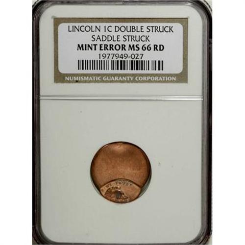 <B>No Date 1C Lincoln Cent--Double Struck, Saddle Struck--MS66 Red NGC.</B></I> <BR><BR><B>Coin Engraver:</B> Victor D. Brenner<BR><BR><b>Shipping:</b> Coins & Currency (<a target="_blank" href="http://www.heritageauctions.com/common/shipping.php">view shipping information</a>)