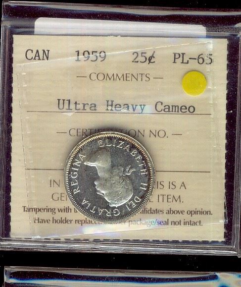 1959 25¢ ICCS PL65 Ultra Heavy Cameo.