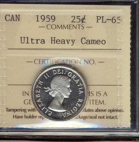 1959 25¢ ICCS PL65 Ultra Heavy Cameo.