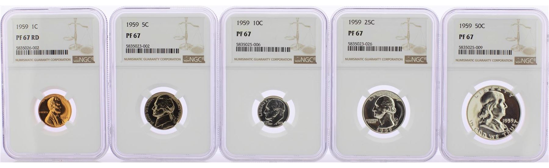 One 1959 (5) Coin Proof Set NGC Graded PF67. NGC Certified.