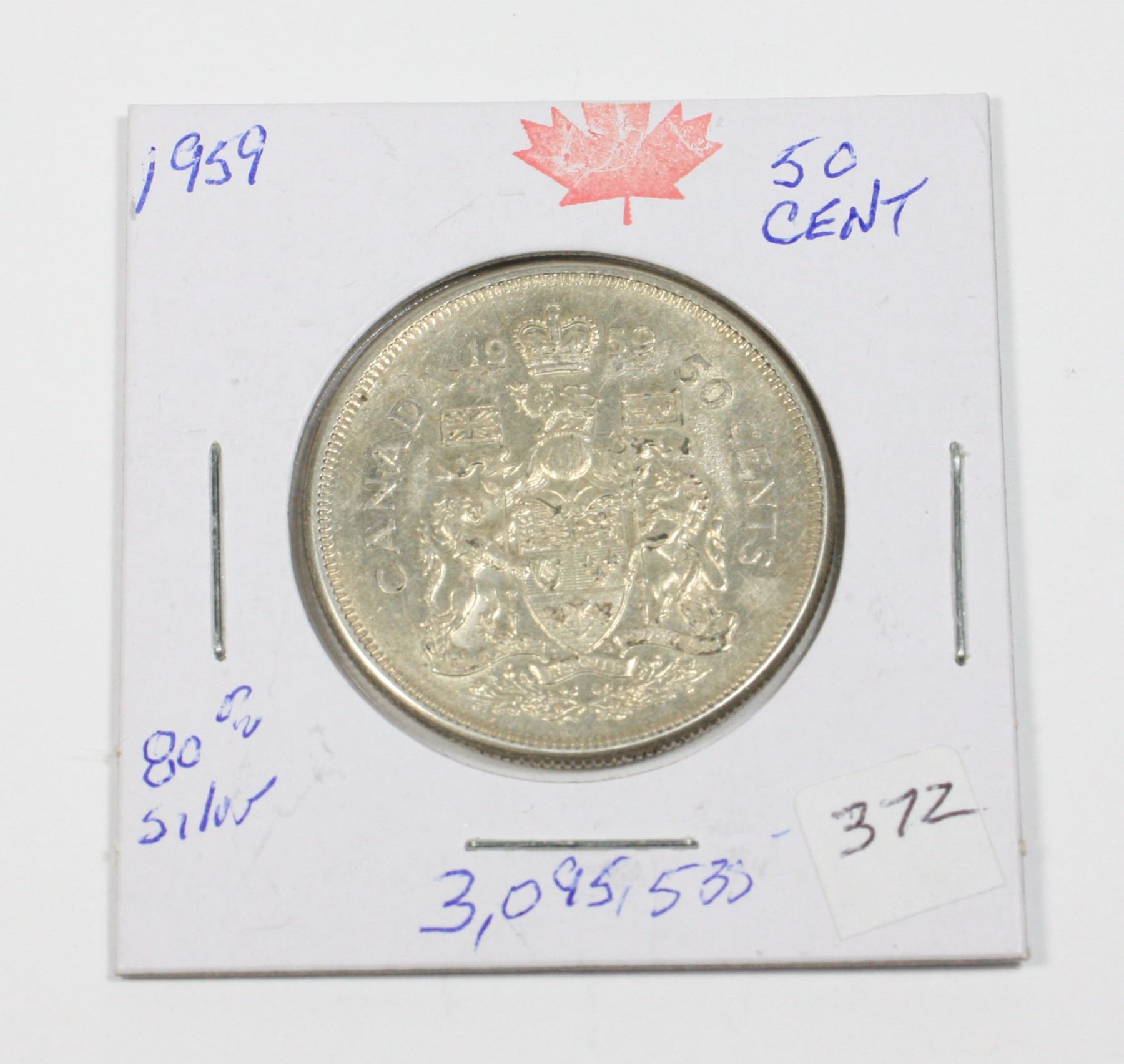 1959 50 CENT PIECE 80% SILVER ONLY 3,095,535