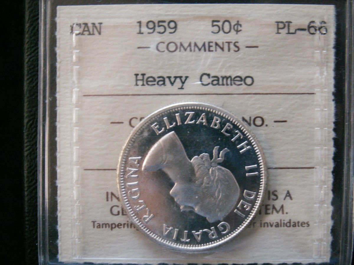 1959 50¢ ICCS PL66 Heavy Cameo. Tied for finest graded.