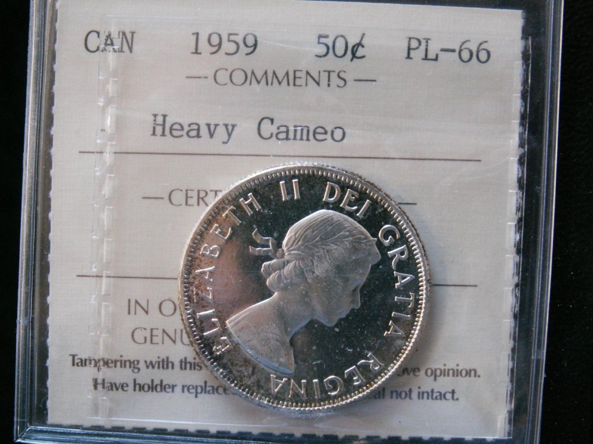 1959 50¢ ICCS PL66 Heavy Cameo. Tied for finest graded.